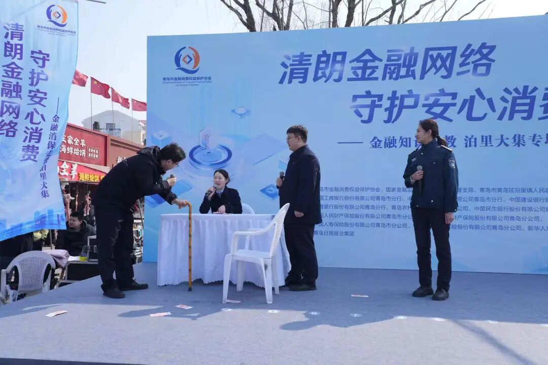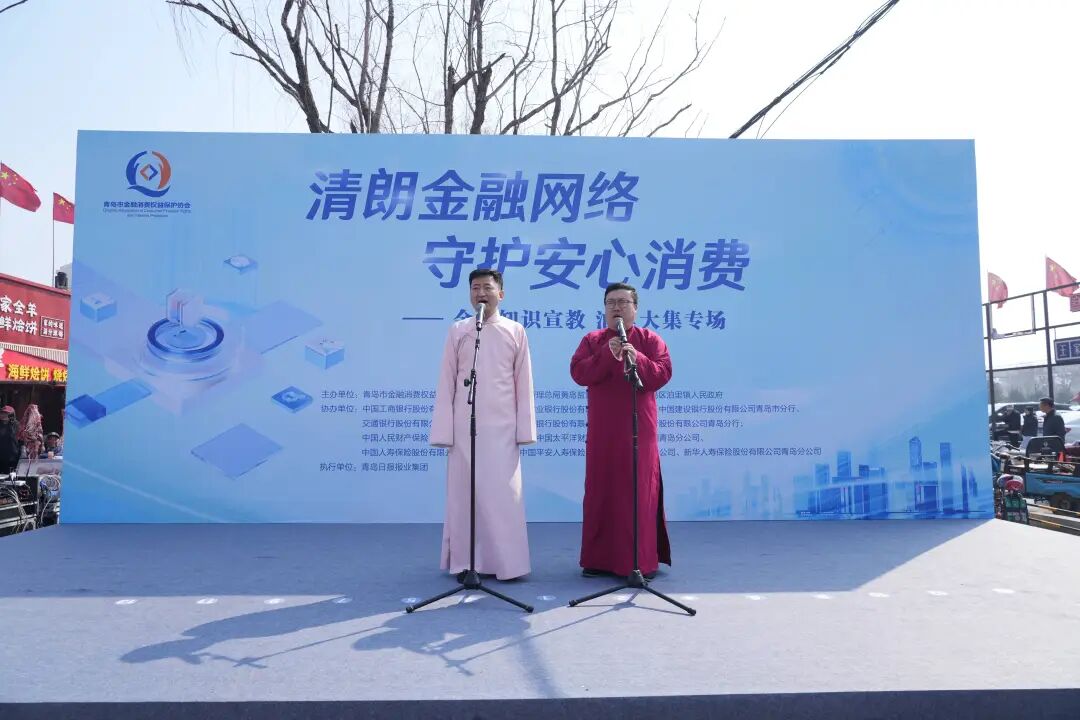 金融机构编排了相声、情景剧,以通俗易懂的方式传递金融知识。如建设银行青岛西海岸新区分行的小品《反诈银行》,农行青岛市分行的相声《防范非法集资,从你我做起》,一个演得真切,一个逗得开怀,台下观众看得目不转睛。”中国人寿青岛市分公司的《金融消保三句半》、民生银行青岛分行的《反诈脱口秀》,则用年轻人的视角,把“杀猪盘”“刷单诈骗”讲得既新潮又透彻,让不少赶集的年轻人和新市民频频点头。